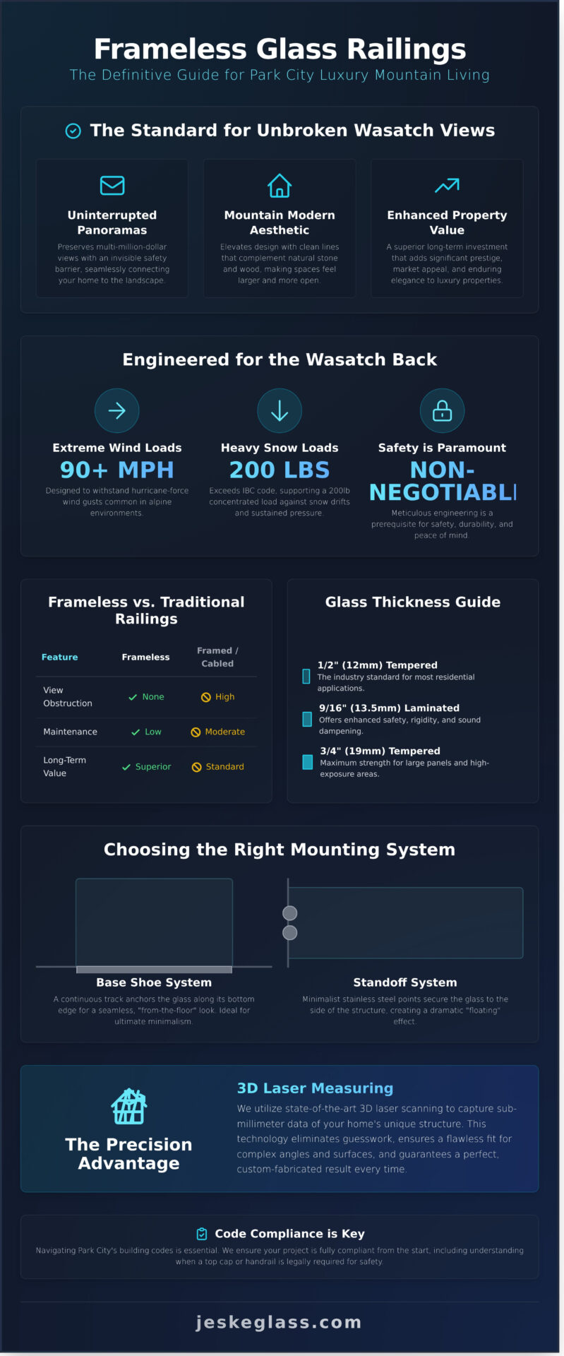 - Learn why specialized engineering for Park City’s high wind and heavy snow loads is non-negotiable for a safe and durable glass railing system.